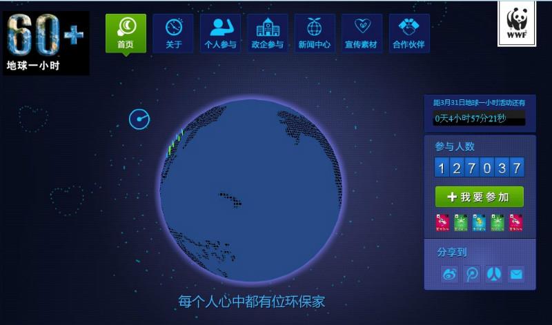 2012年“地球一小时”的活动主题为:每个人心中都有一位环保家。一呼百应公司(一呼百应B2B商贸搜索引擎)积极响应“地球一小时”环保活动,号召大家在今晚的活动一小时中关上灯,并做出一个环保改变,同时动员身边的其他人也加入环保行列。